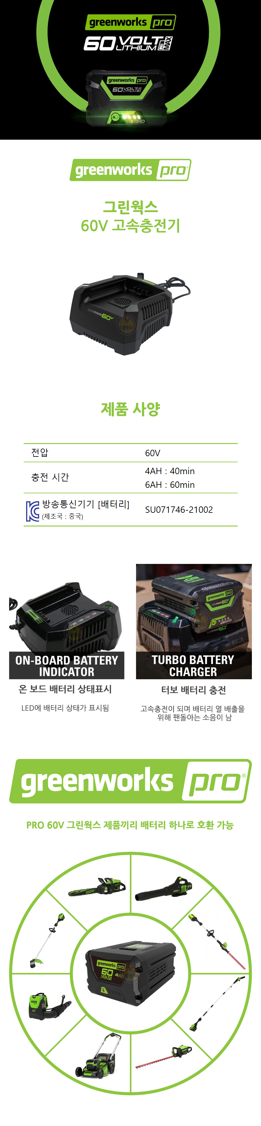 그린웍스 60V 373 고속충전기 공구몰 고용량 GW2904373