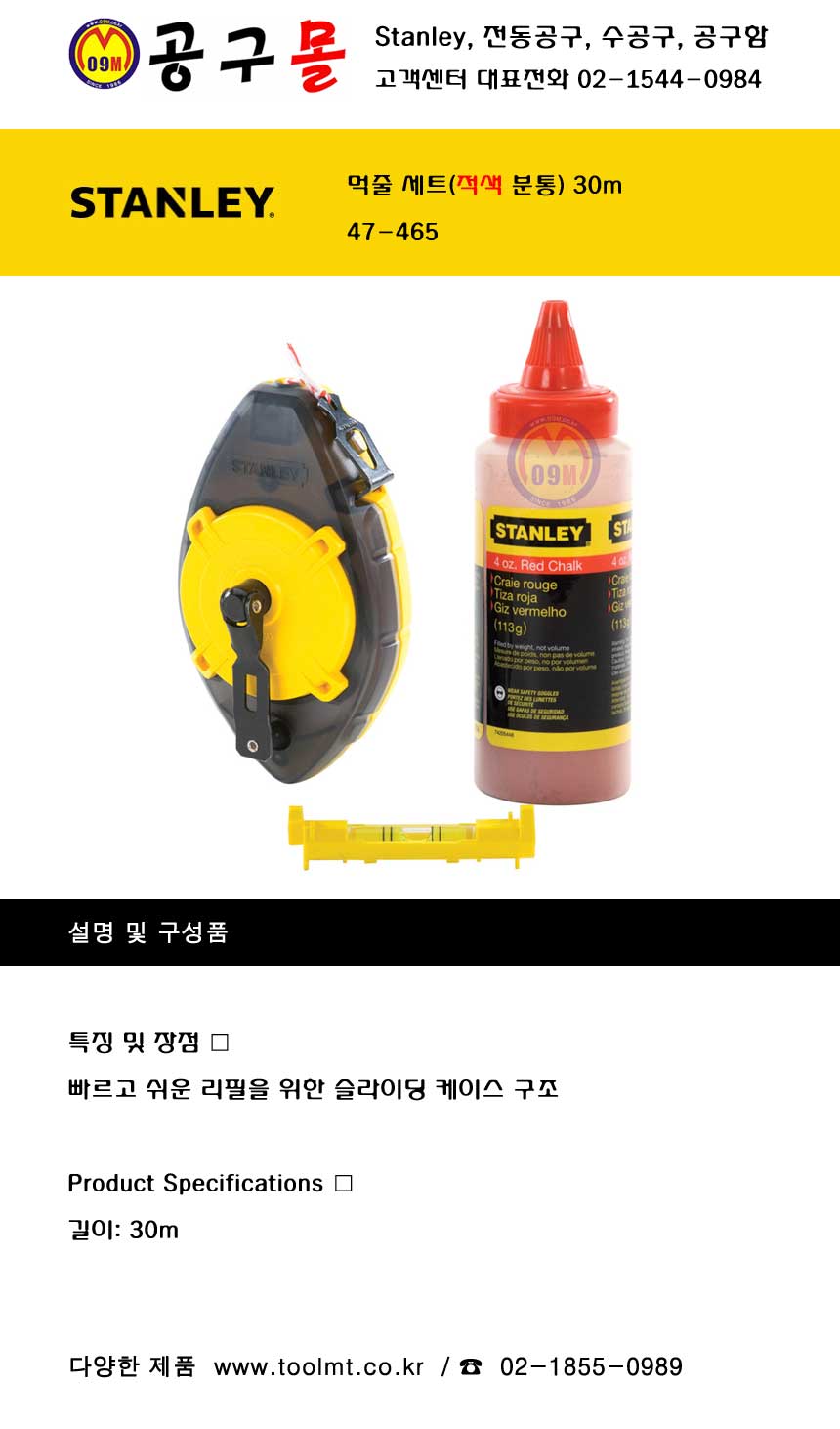 먹줄세트(적색,분통) 30m 47-465 먹통세트, 스탠리, STANLEY, 47465, 412-0913