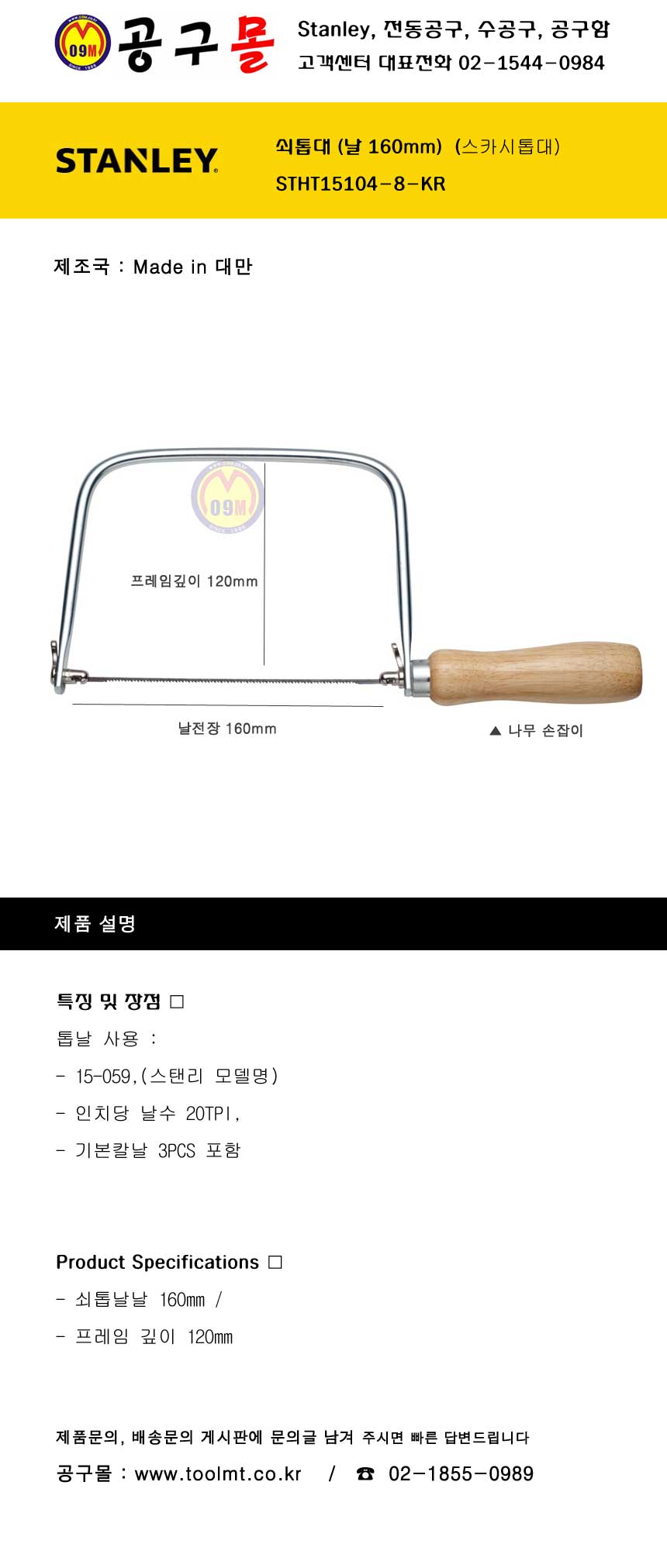 실톱대 STHT15104-8-KR (톱날3개) STANLET,스텐리, 목공구, 공구몰,스카시톱대