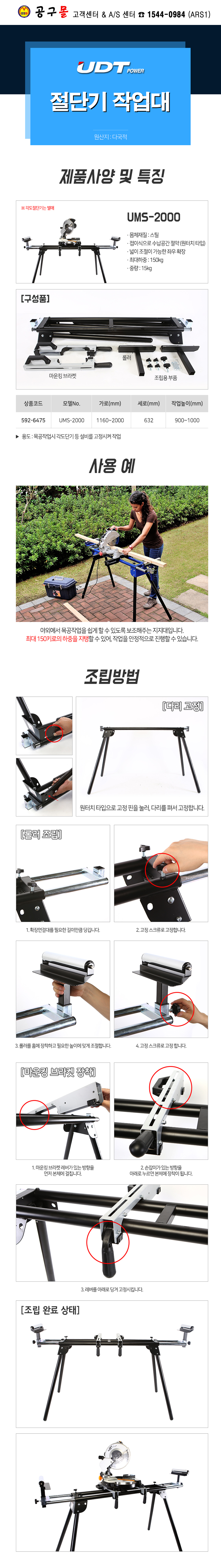 UDT 작업스탠드 UMS-2000 UDT,절단기테이블, 작업테이블, 공구몰, UMS2000, 5926475,592-6475