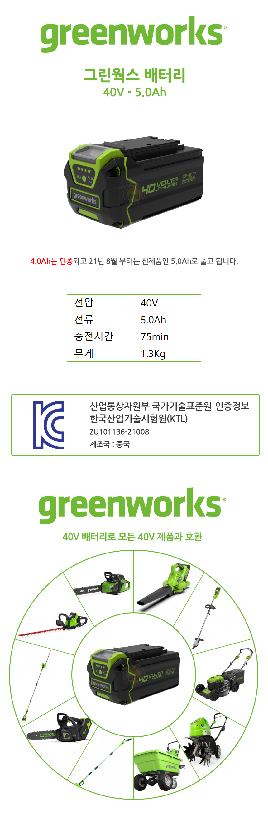 그린웍스 배터리 40V 573 5.0Ah , AS 및 수리는 울산 공구몰,GW2905573