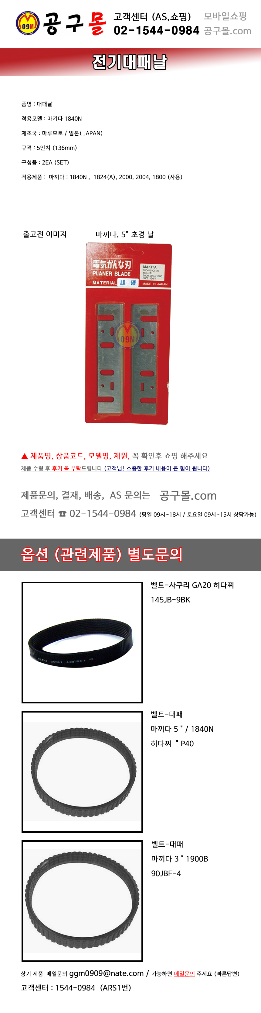 초경대패날 마끼다 1840N (5INCH) 전기대패날, 공구몰 ,목공구