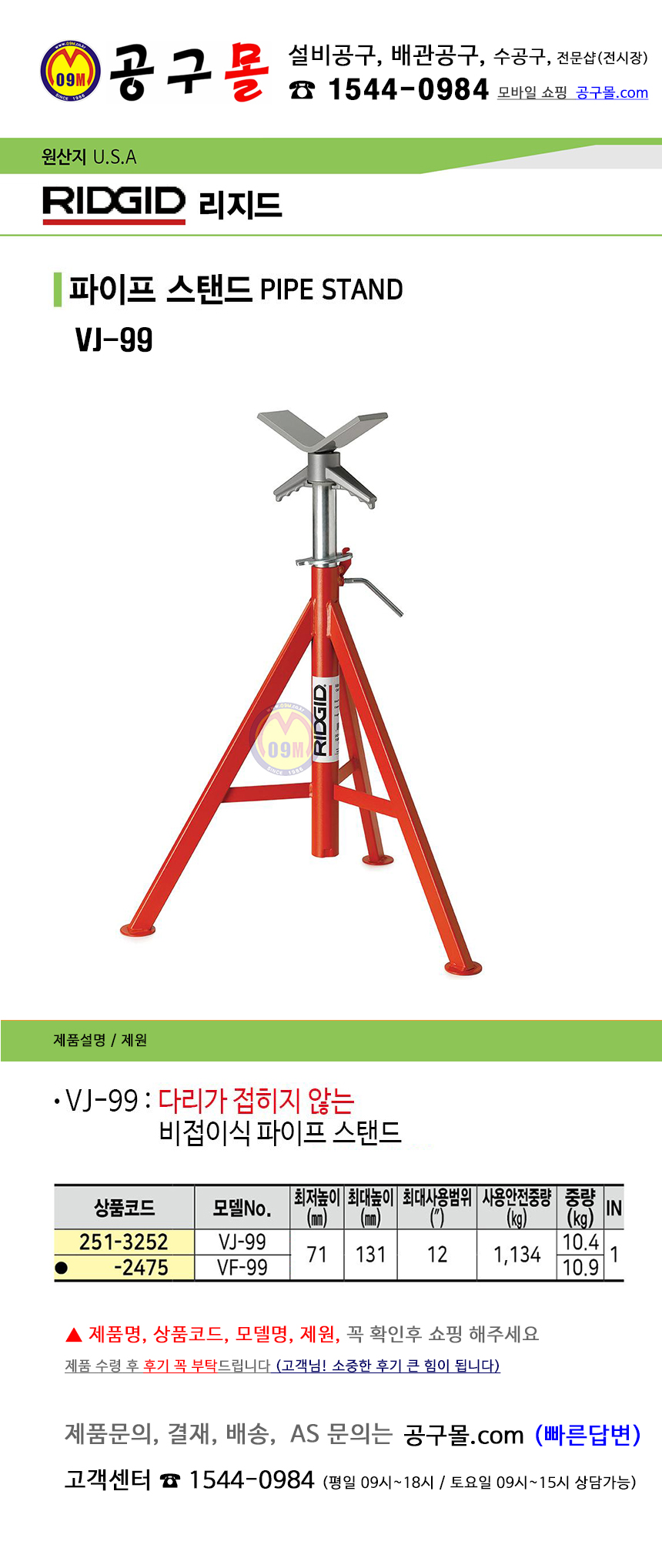리지드 파이프 스탠드 VJ-99(71-131mm) RIDGID,공구몰, 설비,배관공구, 251-3252