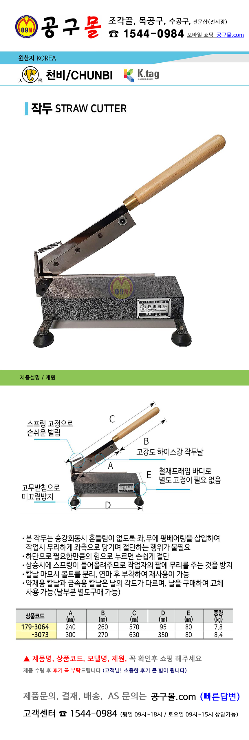 천비 하이스강 작두 240mm(날길이) 공구몰, 약초작두, 한약작두, 버섯작두,179-3064