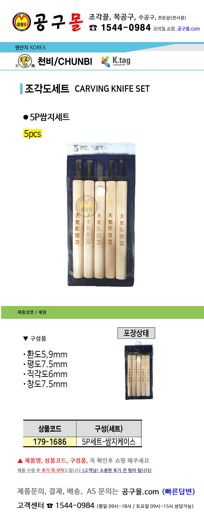 천비 조각도 쌈지세트 5P세트 공구몰, 조각칼, 목공구, 179-1686