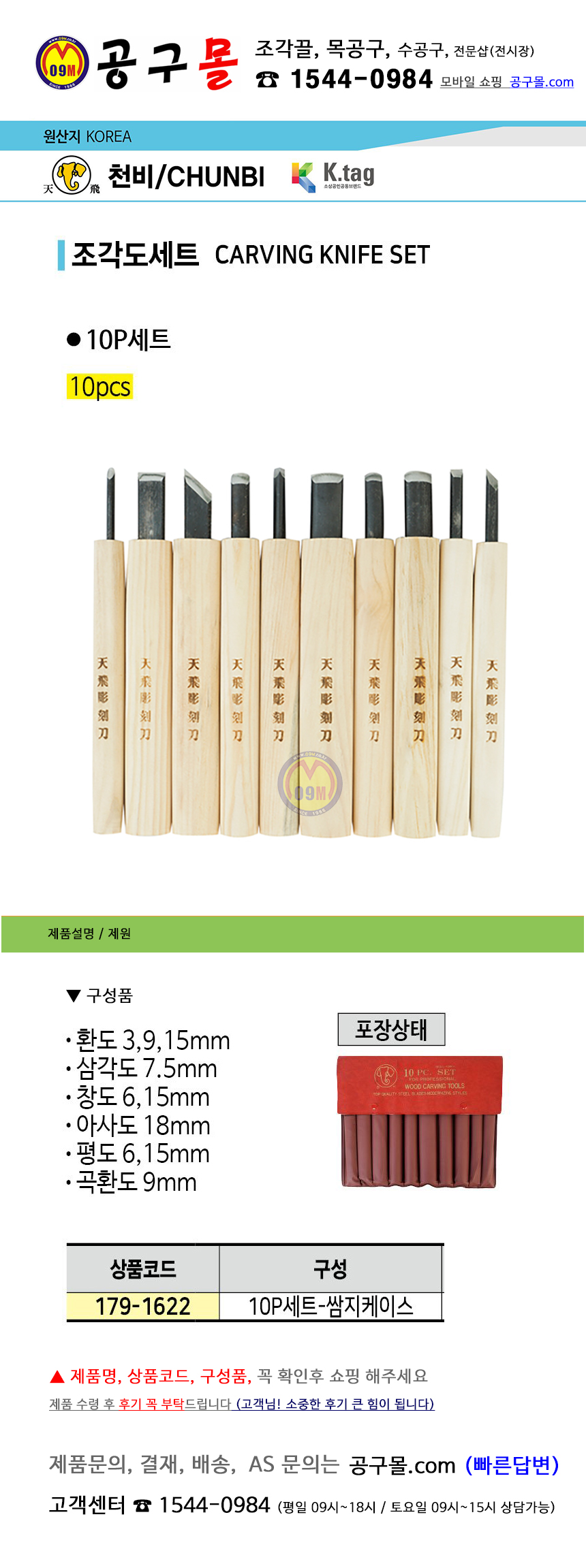 천비 조각도세트 10P 쌈지케이스, 공구몰, 조각칼, 목공구, 179-1622