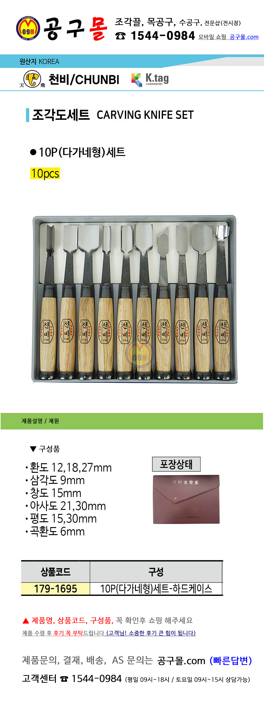천비 조각도세트 10P (다가네형) 하드케이스, 공구몰, 조각칼, 목공구, 179-1695