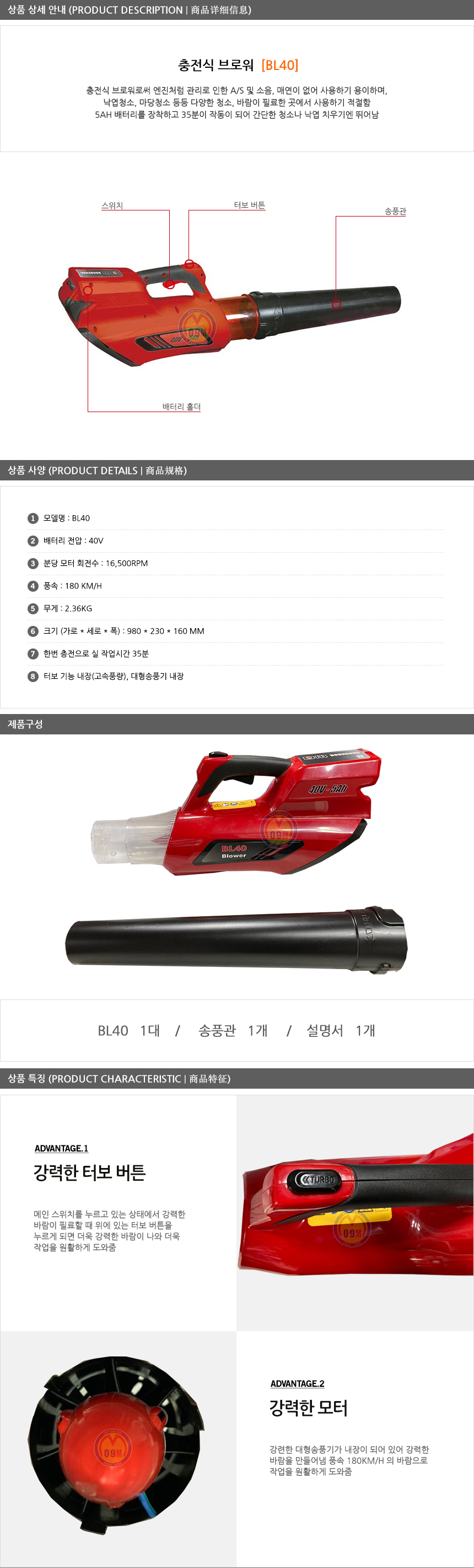 북성-40V 충전브로워세트 BL40 (5AH 1개) 북성공업, 송풍기, 울산 공구몰(MD)