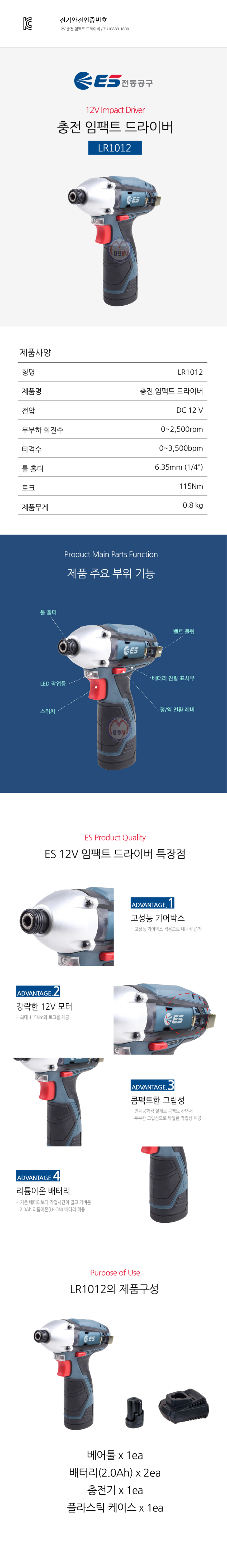 ES산업 12V 임팩트 드라이버 LR1012 ES산업,공구몰