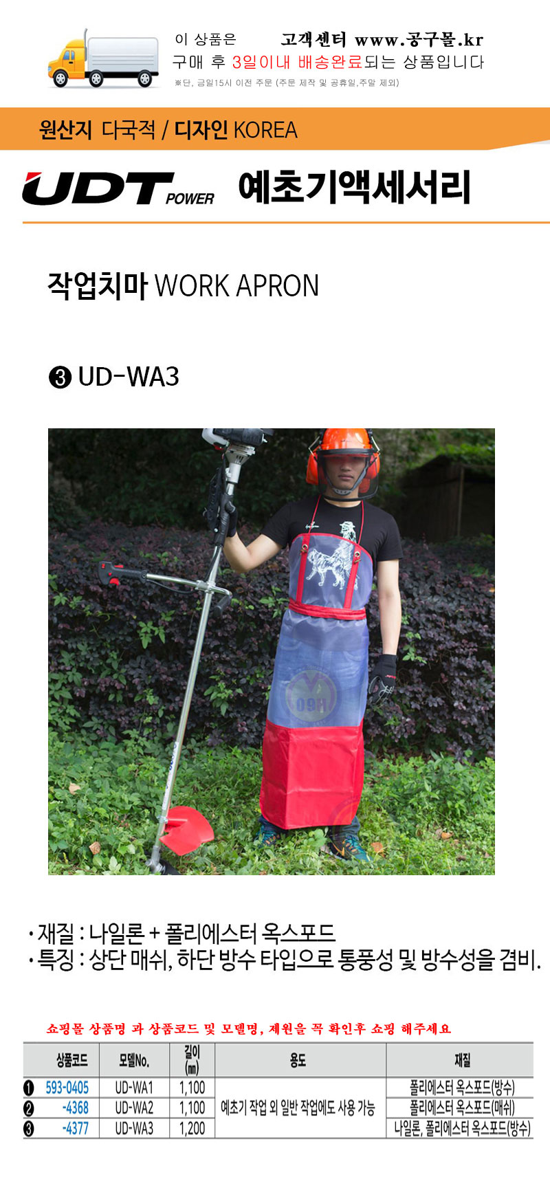 UDT 작업치마 UD-WA3(예초기작업 및 일반작업) UDT, 앞치마, 593-4377