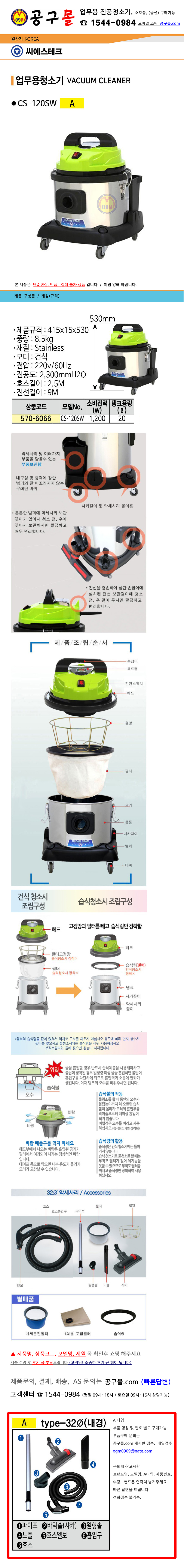청소기(건식) CS-120SW (1200W,20L) 씨에스테크, 공구몰, 건식청소기, 업소용청소기, 산업용청소기, 570-6066