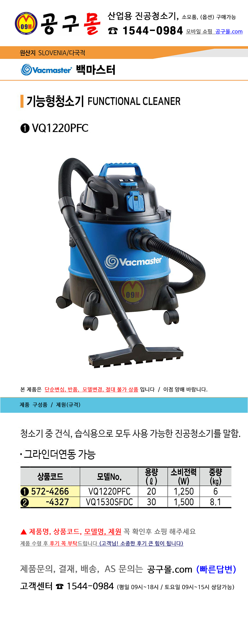 청소기(건습식) VQ1530SFDC (1500W,30L) 백마스터, 진공청소기, 건식청소기,습식청소기,572-4327
