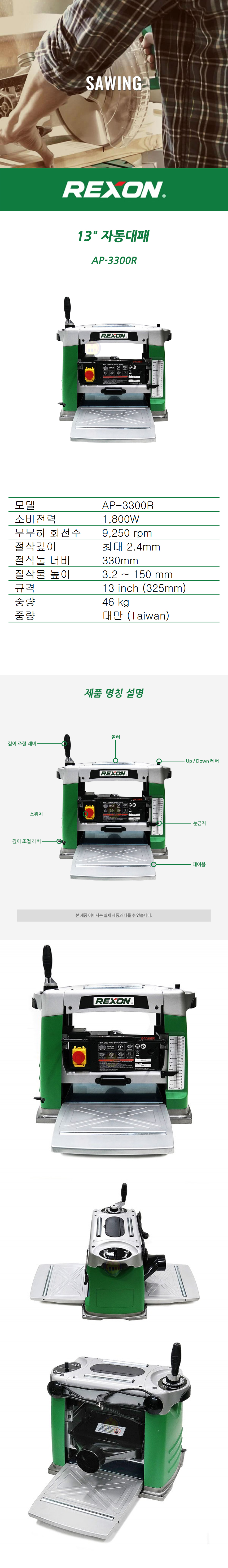렉슨 자동대패 AP-3300R (1,800W-330MM) 전기대패, 수압대패, 일면대패,513-0148,AP3300R
