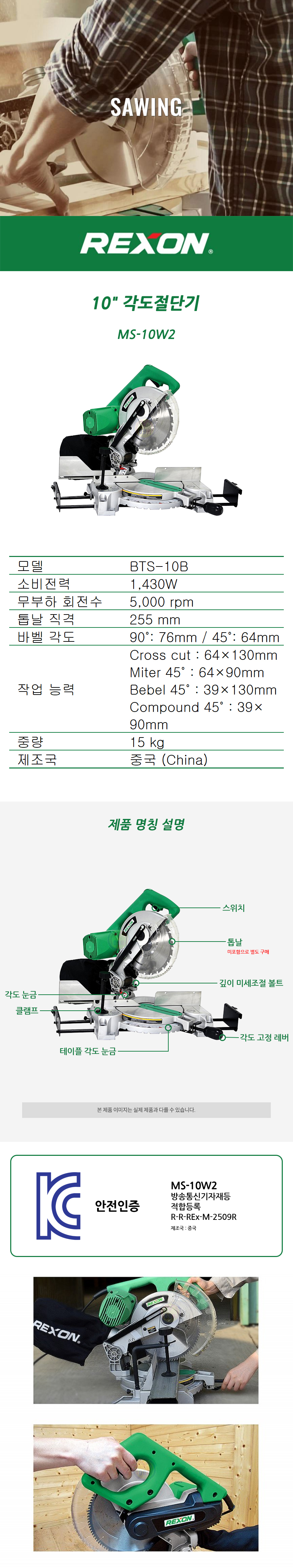 렉슨 각도절단기 MS-10W2 (1550W-254mm) 날별도 절단기 각도톱 원형톱,MS10W2