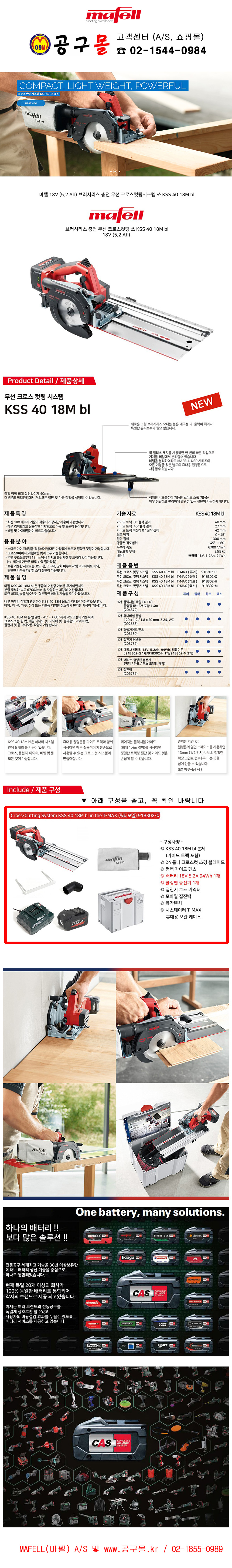 마펠 무선 플런지쏘(퀘터) KSS40 18M bl (18Vx5.2Ah,1B) 트랙쏘, MAFELL(마펠) 브리리스,크로스 컷팅 시스템,91B302-Q