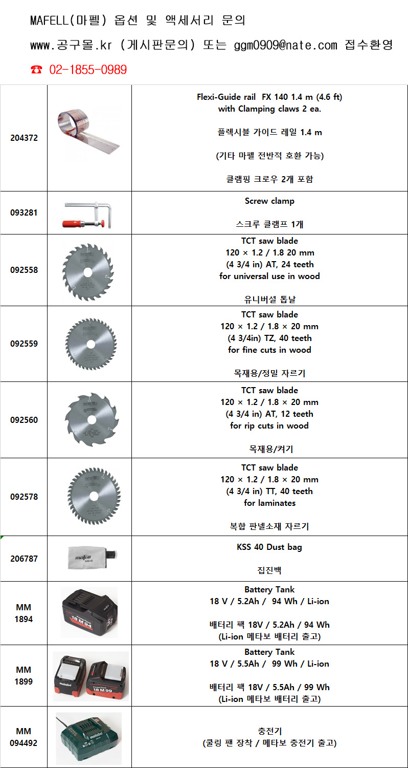 마펠(MAFELL) 제품과 메타보 브랜드 [ 배터리 & 충전기 ]  호완됩니다
