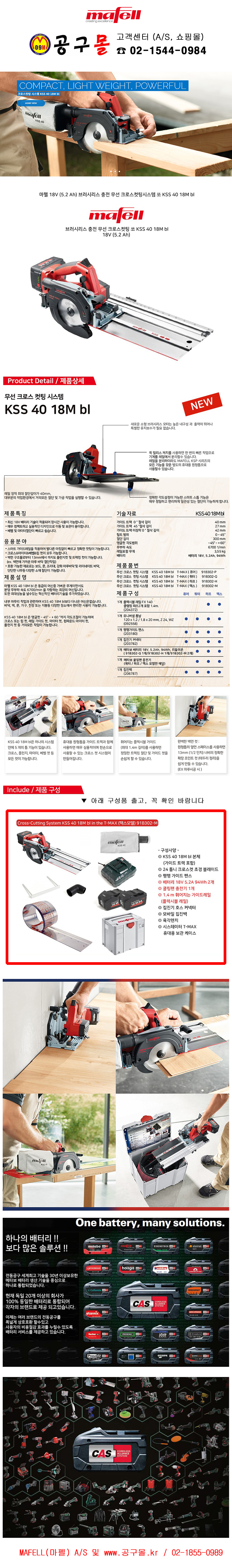 마펠 무선 플런지쏘(퀘터) KSS40 18M bl (18Vx5.2Ah,1B) 트랙쏘, MAFELL(마펠) 브리리스,크로스 컷팅 시스템,91B302-Q