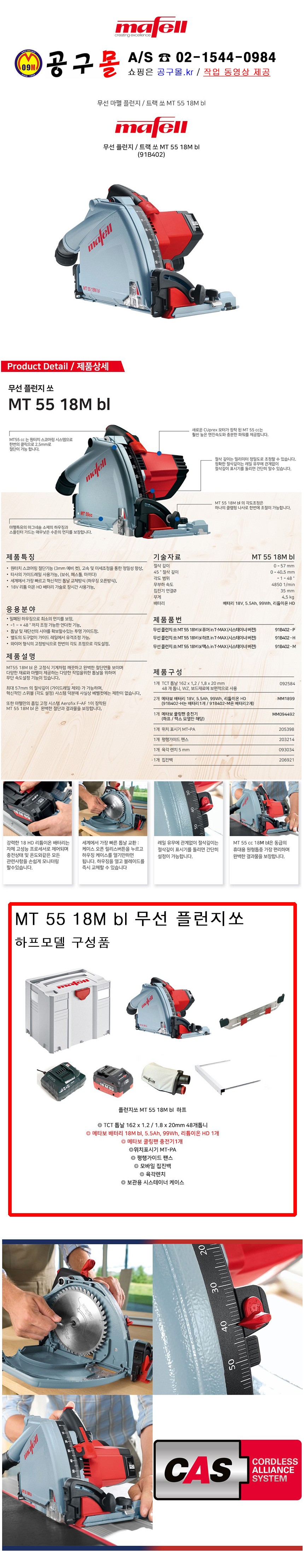 품절26년3월입고.마펠 MT55 18M bl (하프)18V-5.5AH(1B) 무선 플런지쏘 / 트랙쏘, MAFELL, 91B402-H