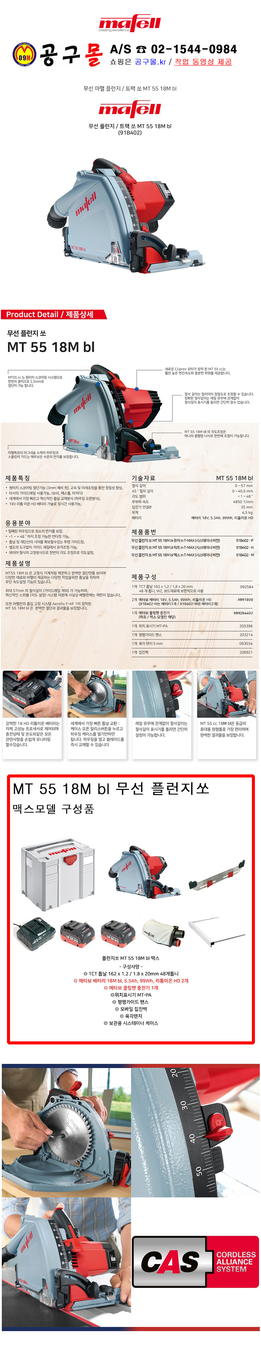품절26년3월입고.마펠 MT55 18M bl (맥스) 18V-5.5AH(2B) 무선 플런지쏘 / 트랙쏘, MAFELL, 91B402-M