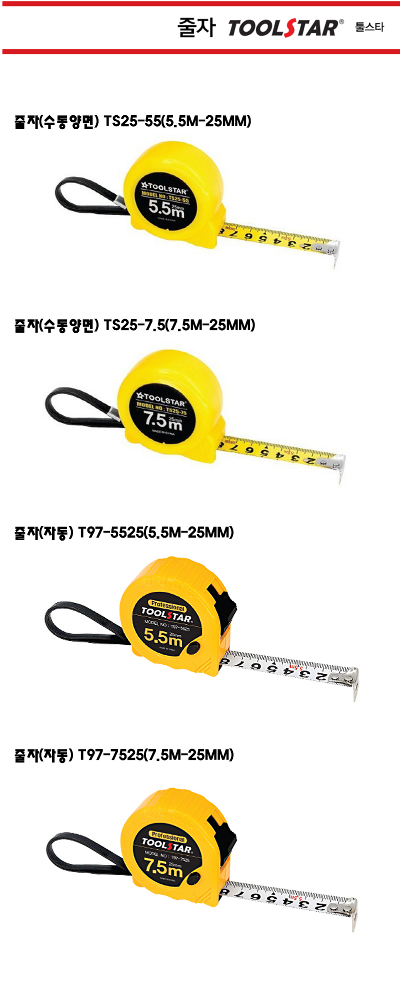 툴스타 줄자(자동) T97-7525(7.5M-25mm) TOOLSTAR