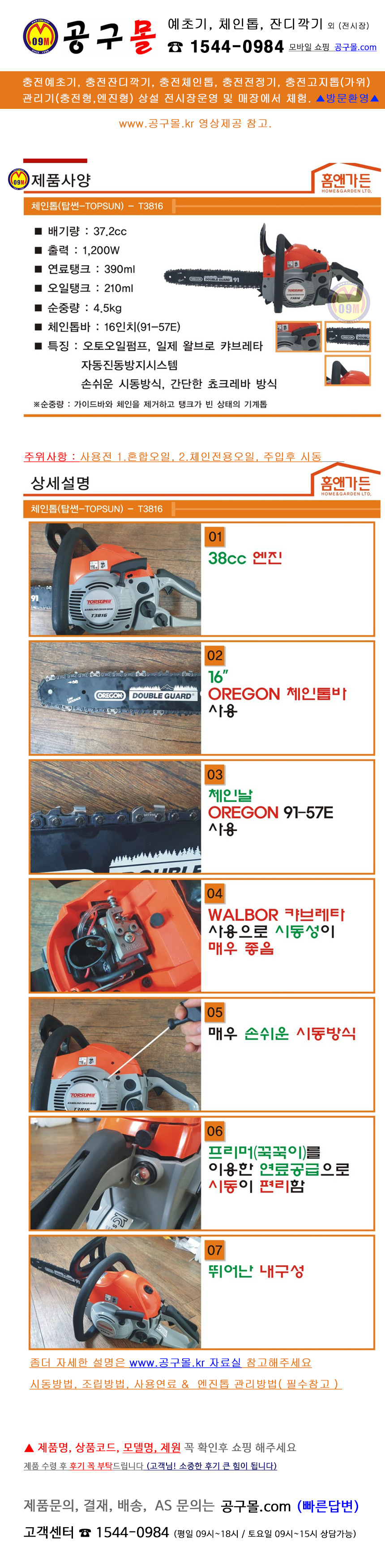 탑썬 엔진체인톱 T3816 (16) (91-57) 탑썬,TOPSUN, 체인톱, 화목절단톱,