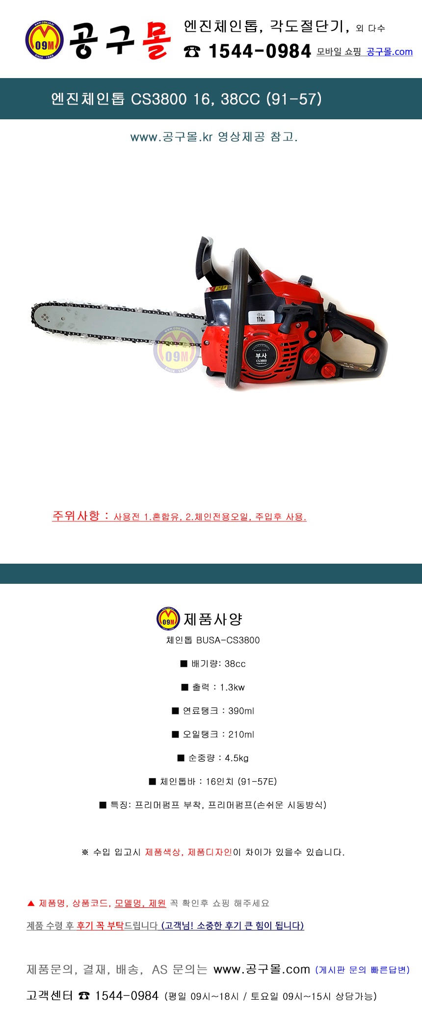엔진체인톱 CS3800 16, 38CC (91-57) 부사, BUSA, 체인톱,