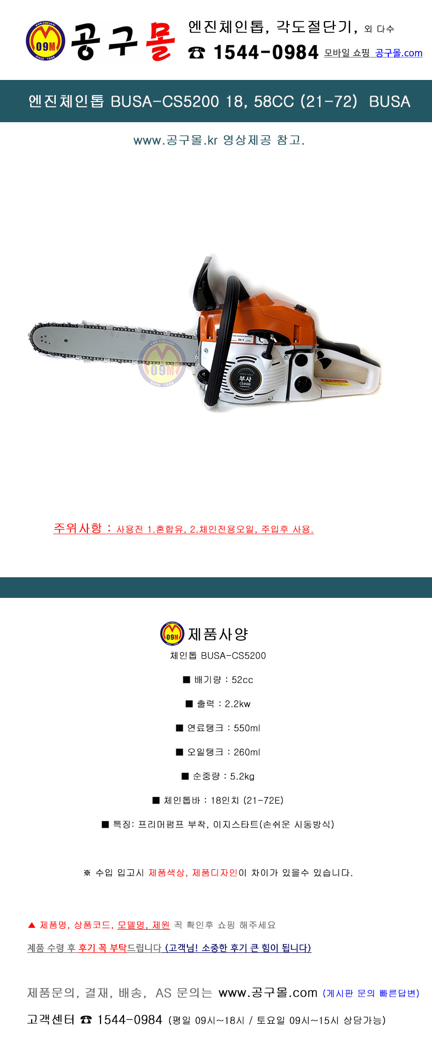 엔진체인톱 CS5200 18, 58CC (21-72) BUSA, 부사, 체인톱,