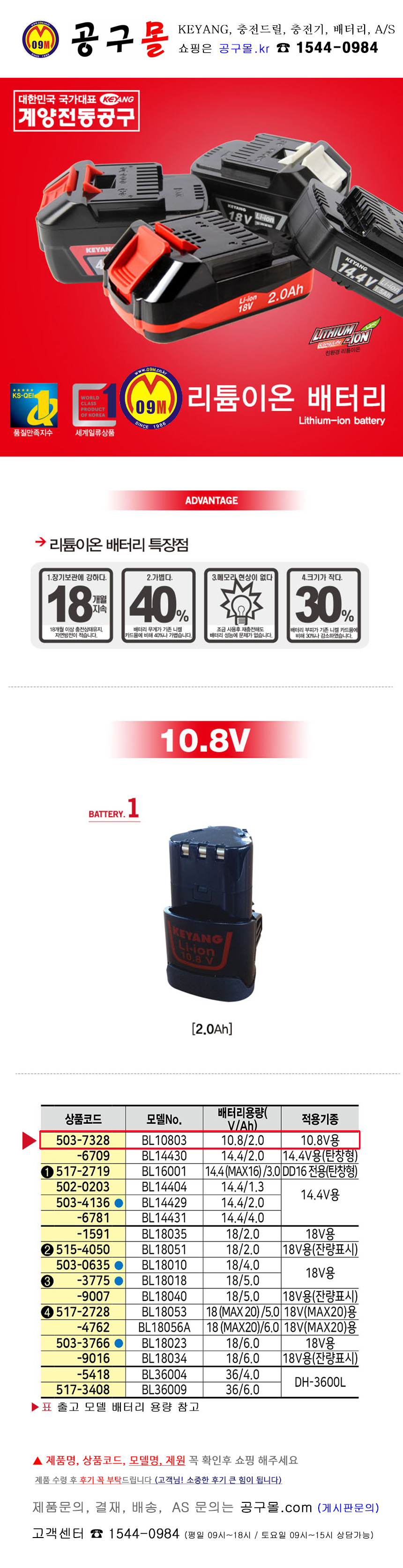 계양 리튬 배터리 BL10803 (10.8V) DD-1202L-2용, KEYANG, 계양, 공구몰, 503-7328