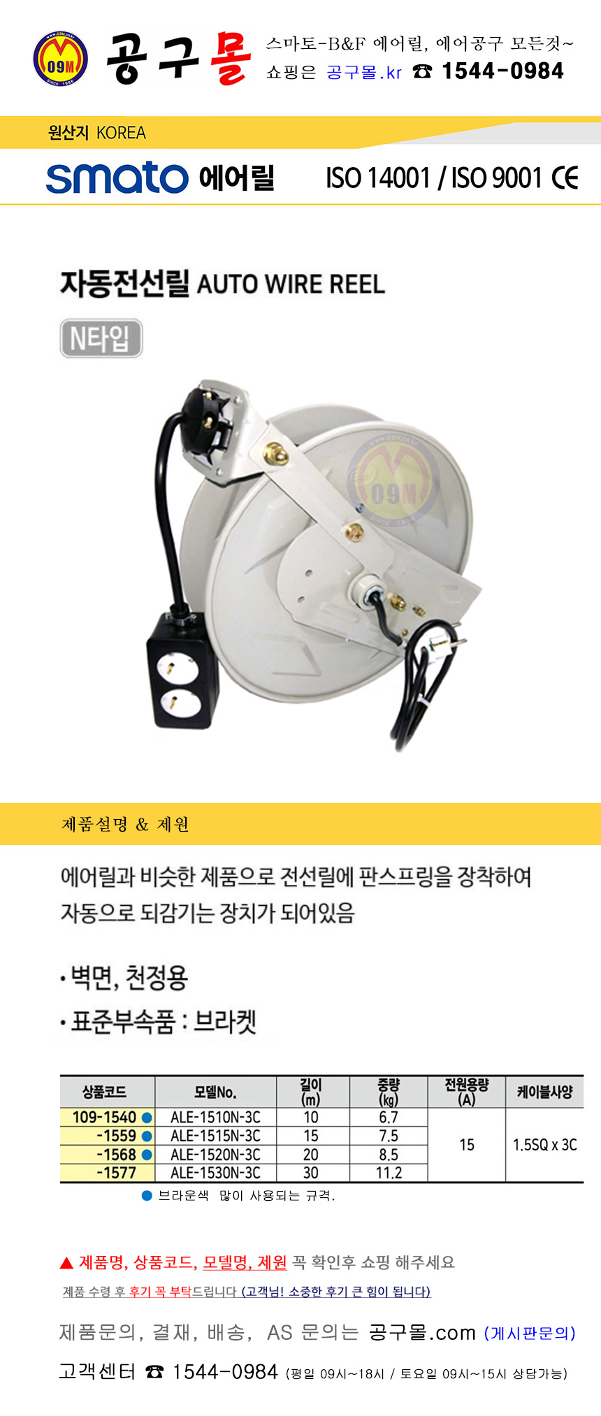UDT 자동전선릴 ALE-1510N-3C, 공구몰, 코드릴, 연장선,, 109-1540