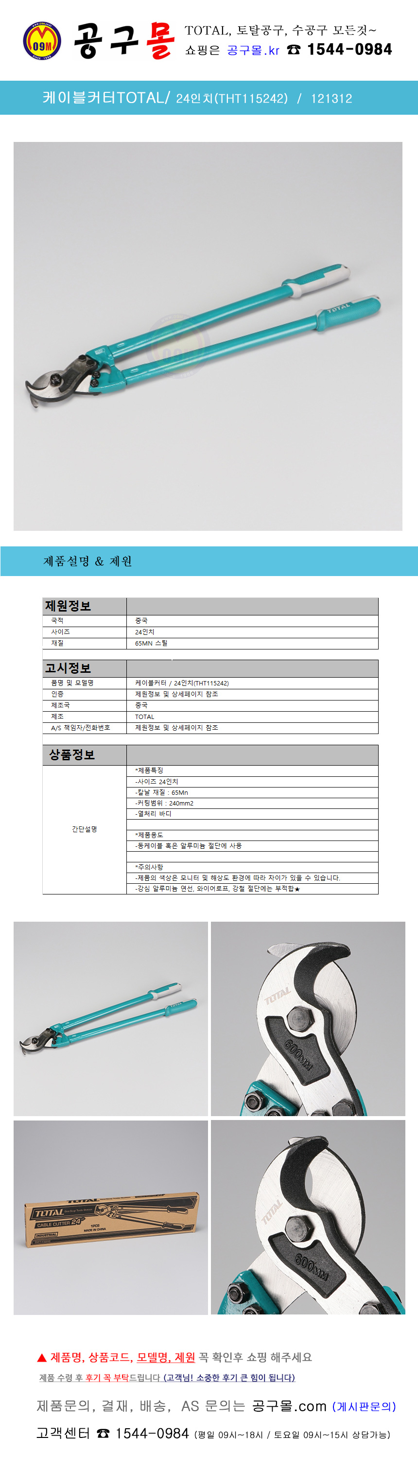 케이블커터 600mm (24) (THT115242) TOTAL, 전선커터, 연선커터, 공구몰, 121312