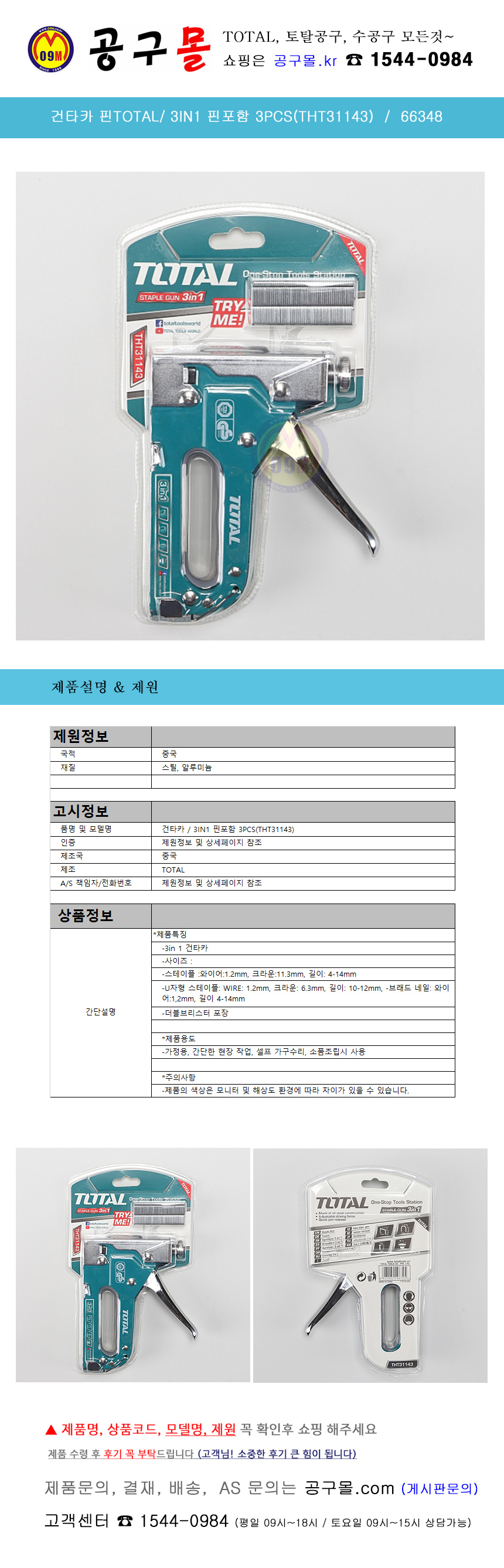 건타카 3IN1 핀포함 3PCS (THT31143) / 손타카, 타카, TOTAL, 토탈공구, 공구몰, 66348