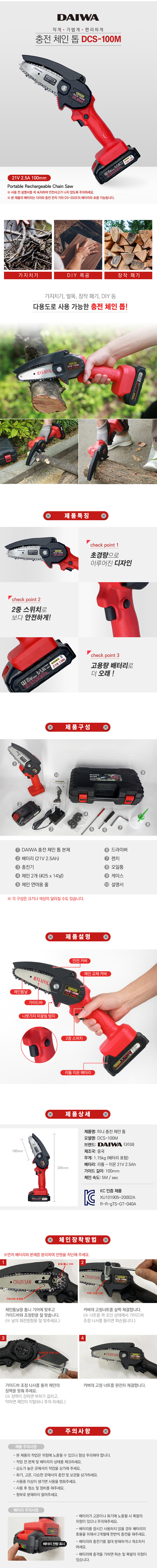 충전체인톱(가치기톱) DSC100M (21Vx2.5Ah) 다이와 DAIWA, 충전톱, 무선톱, 전동톱, 공구몰, 307-6249