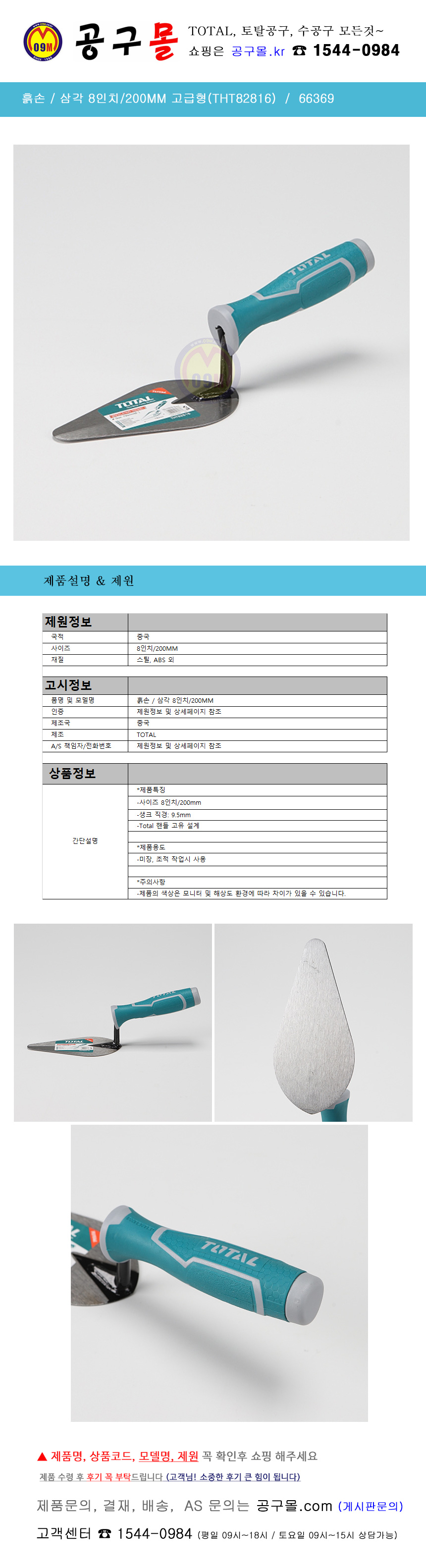 흙손 삼각 200MM 고급형(THT82816) , TOTAL, 토탈공구, 공구몰, 66369