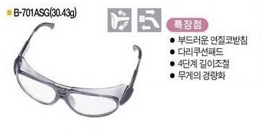 →렌즈교환, OPC렌즈 사양 →Anti-scratch, Anti-UV, Anti-static 사양 →CR-39렌즈 /Anti-fog렌즈 주문사양 →무게 경량 →연질 코받침은 땀으로 인한 흘러내림 방지 및 장시간 착용시 편안한 착용성 제공 →다리 쿠션패드는 한층 더 나은 편안한 착용성과 특히, 움직임이 많은 작업시 흘러내림 방지