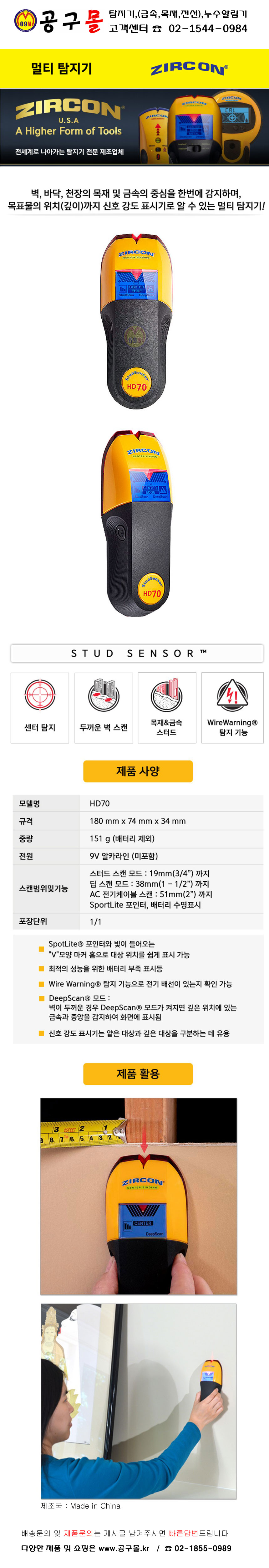멀티탐지기 HD70 ZIRCON, 지르콘, 금속탐지기, 목재탐지기, 전선탐지기, 멀티스캐너, 공구몰