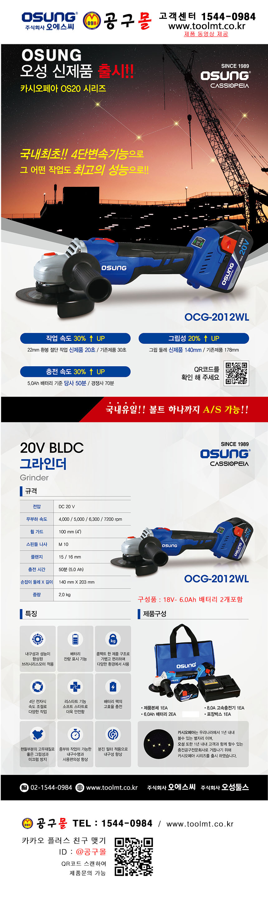 오성-충전그라인더 OCG-2012WL 60, 18V,6Ah,2B,OSUNG, 공구몰, 2132140