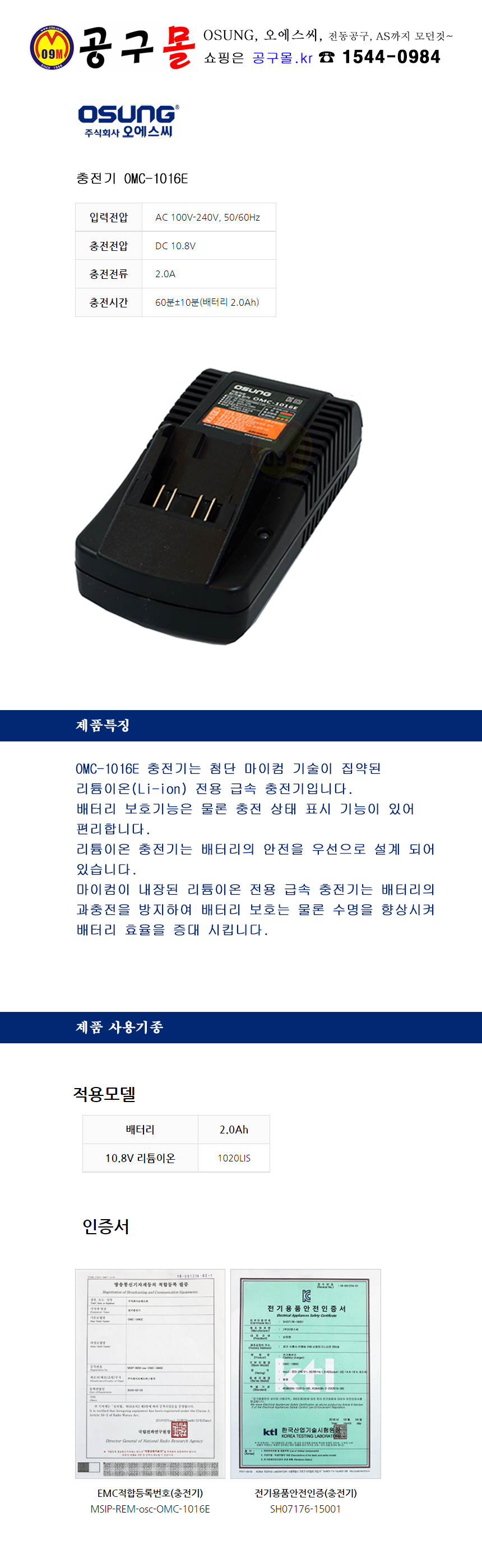 오성-충전기 OMC-1016E (10.8V-1.6Ah), OSUNG, OSC, 오에스씨, 전동공구, 공구몰