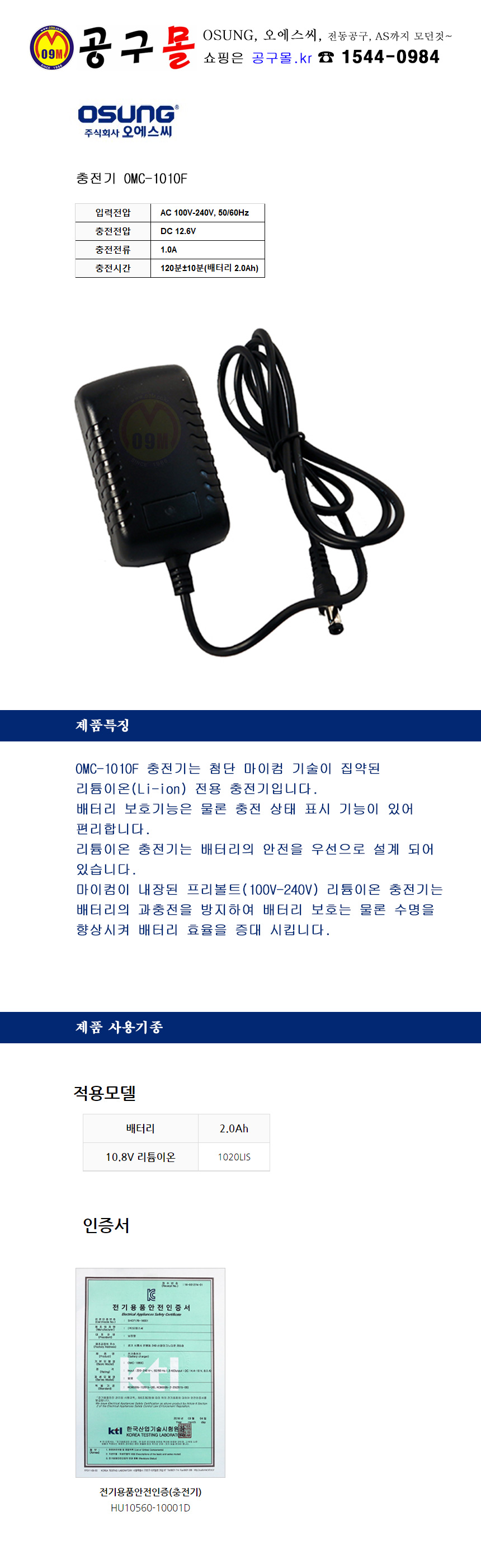 오성-충전기 OMC-1010F (10.8V-1.0Ah), OSUNG, OSC, 오에스씨, 전동공구, 공구몰