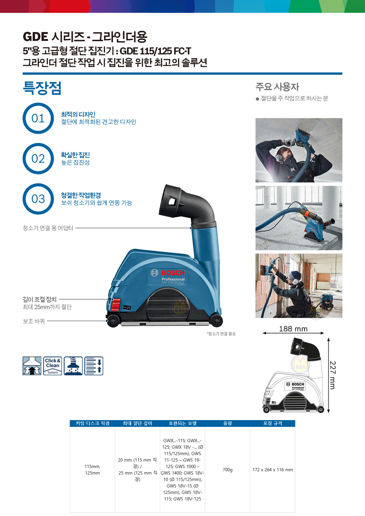 보쉬 그라인더커버 GDE230FC-T (230mm) bosch, 그라인더용집진커버,1600A003DM