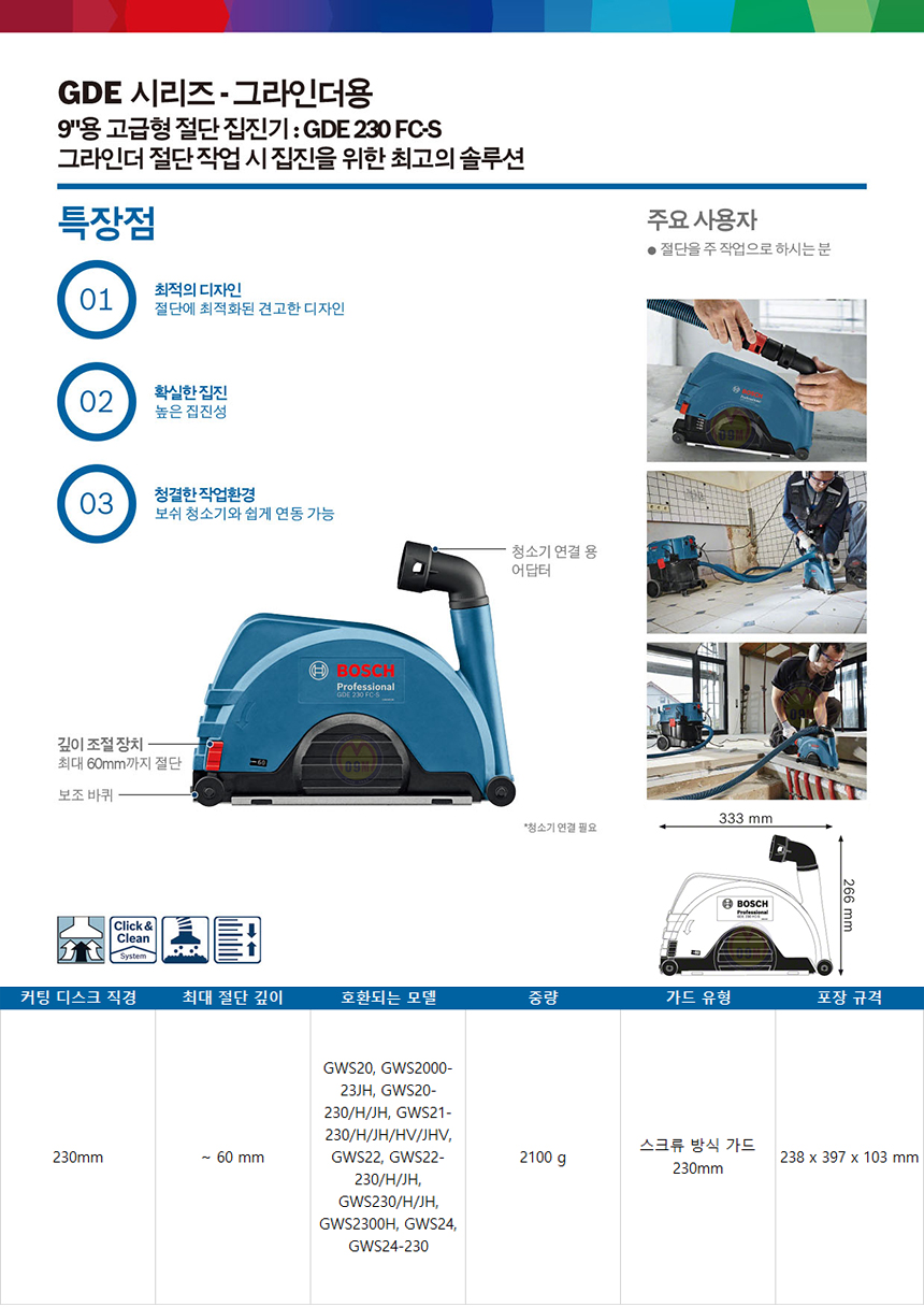 보쉬 그라인더커버 GDE230FC-T (230mm) bosch, 그라인더용집진커버,1600A003DM