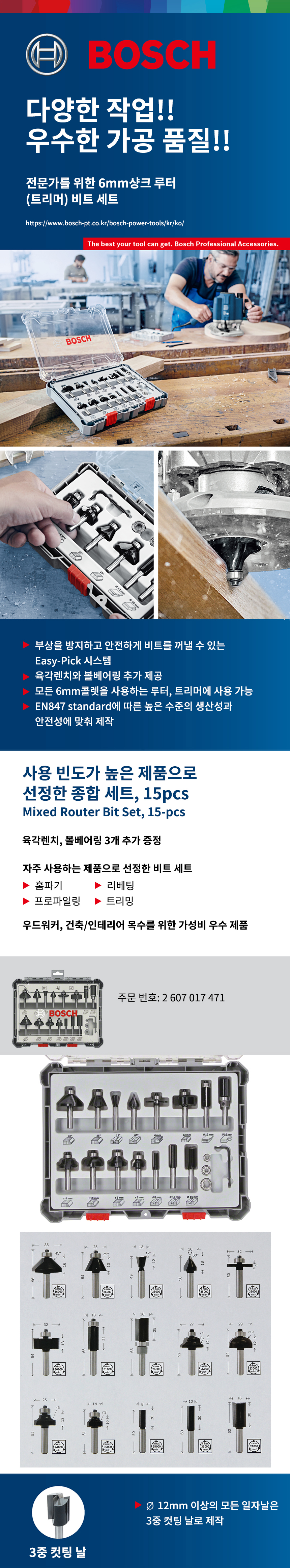보쉬 루터비트세트15pcs (생크6mm) (471), 트리머날세트, 보쉬루터날,2607017471