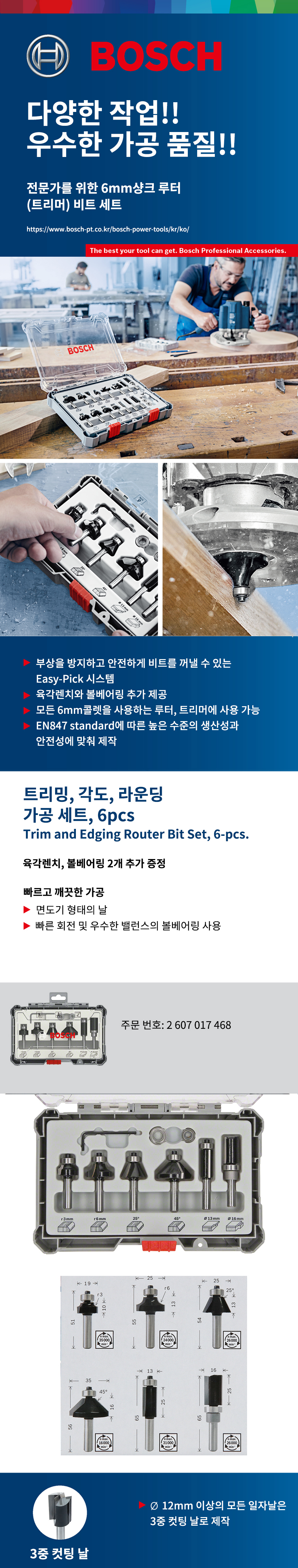 보쉬 루터비트세트 6pcs (트리밍&엣징 6mm) (468), 트리머날세트, 루터기,2607017468
