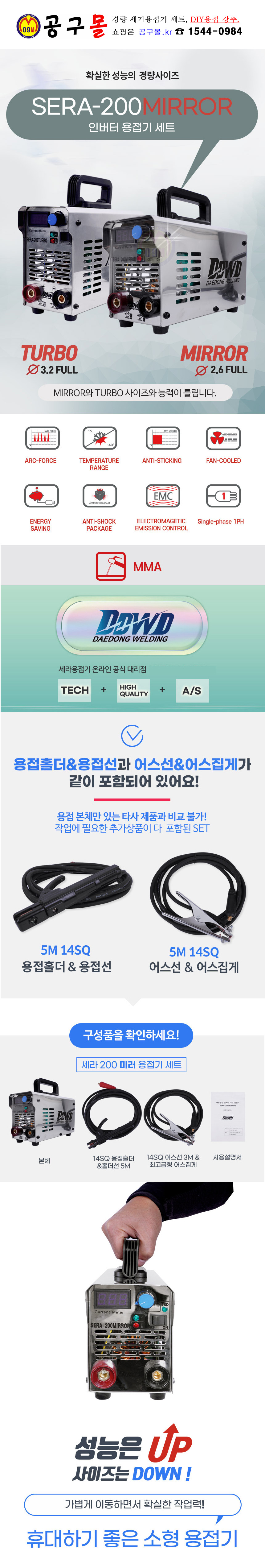 인버터 용접기세트(2.6,FULL) SERA-200MIRROR, DDWD, 세라용접기,아크, 공구몰, 대동월딩