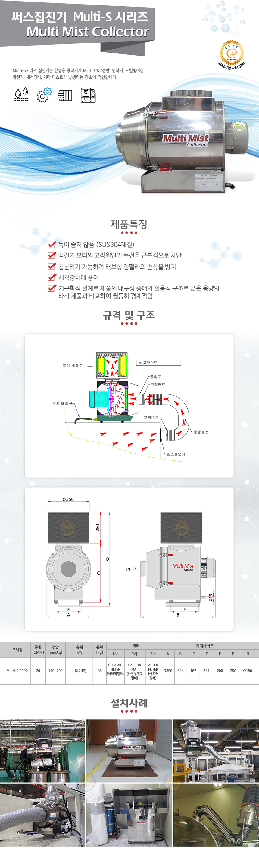 멀티미스트집진기 Multi1500(1.5HP-440V) 오토링크/공구몰/오일미스트 집진기