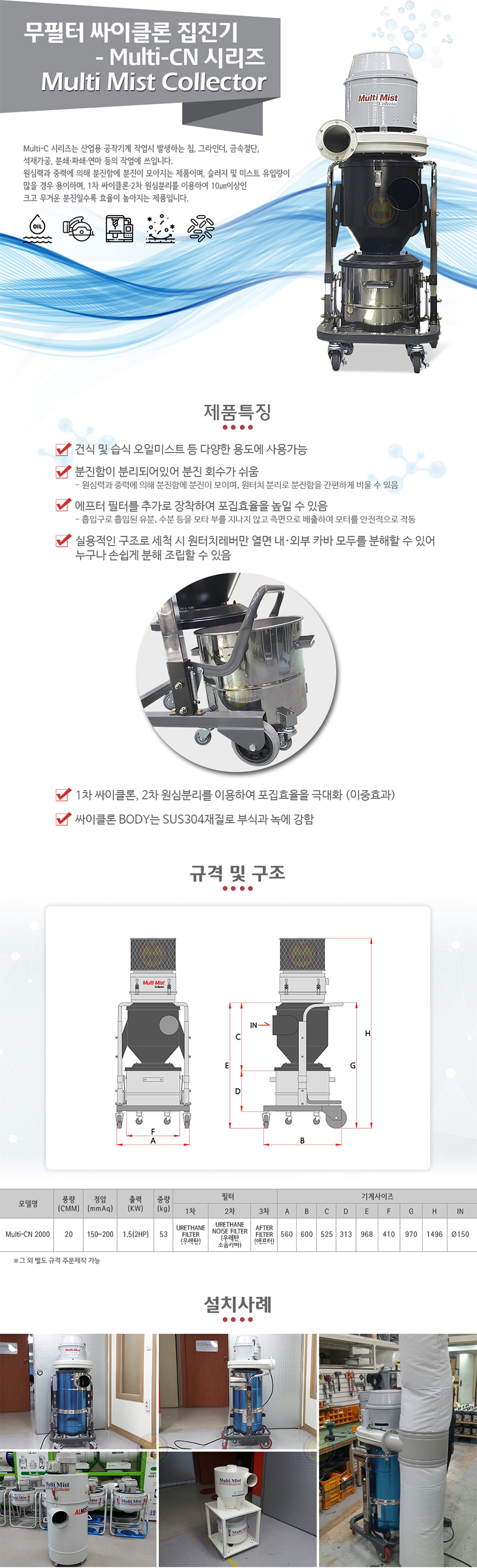 무필터 싸이클론 집진기 Multi-CN-2000 (2.0HP) 오토링크, 산업용집진기 집진기 먼지집진기