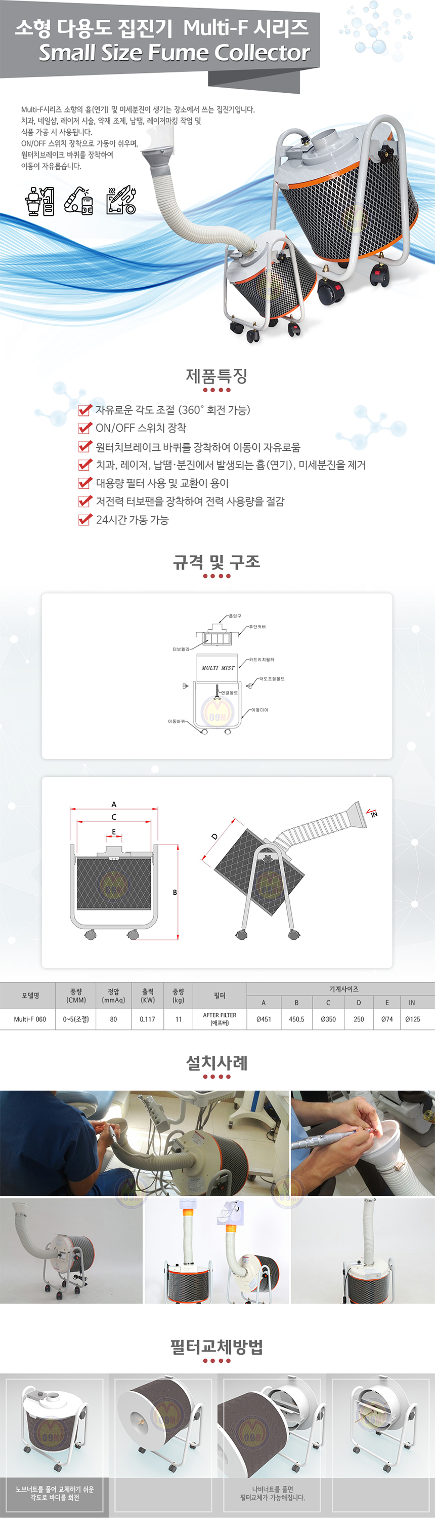 소형 흄집진기 Multi-F-060 오토링크, 납땜집진기 연기집진기 이동식집진기