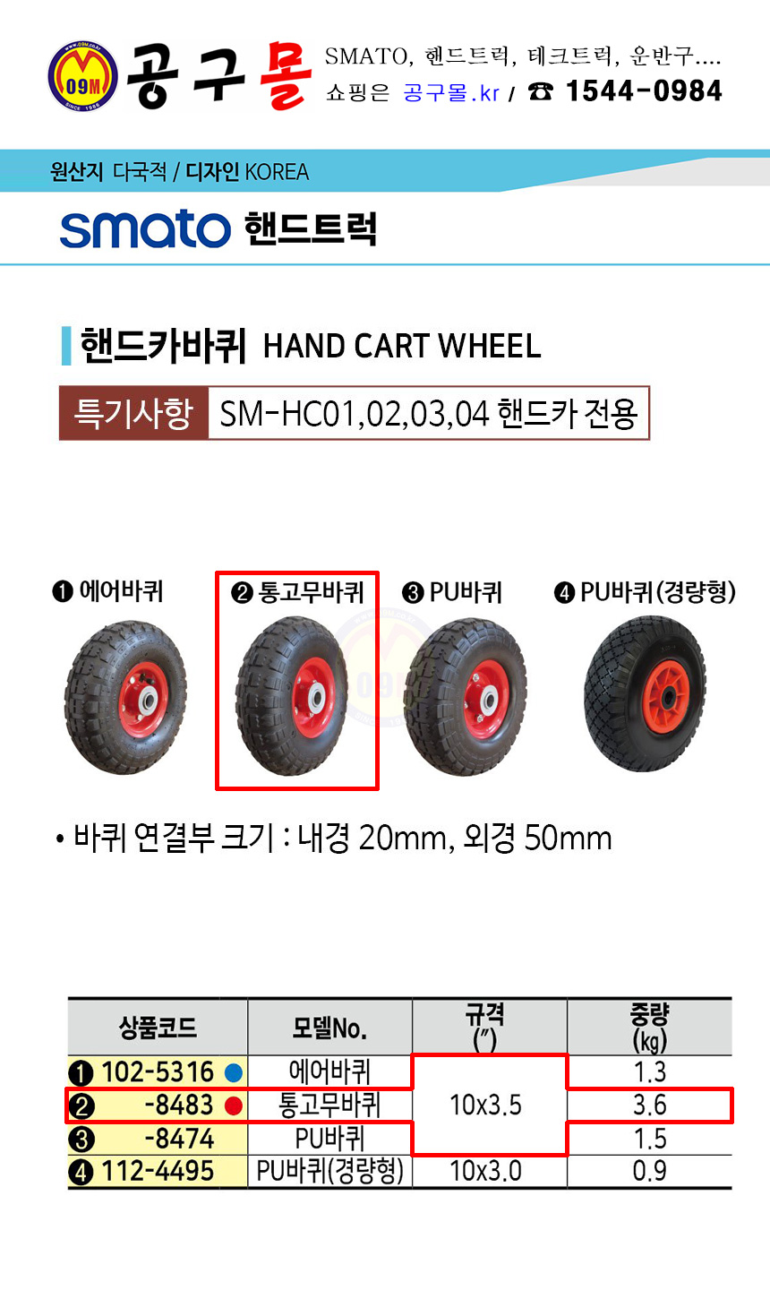 스마토 핸드카바퀴(통고무바퀴) 250mm(10)x90mm(3.5), SMATO, 통바퀴, 공구몰, 102-5316