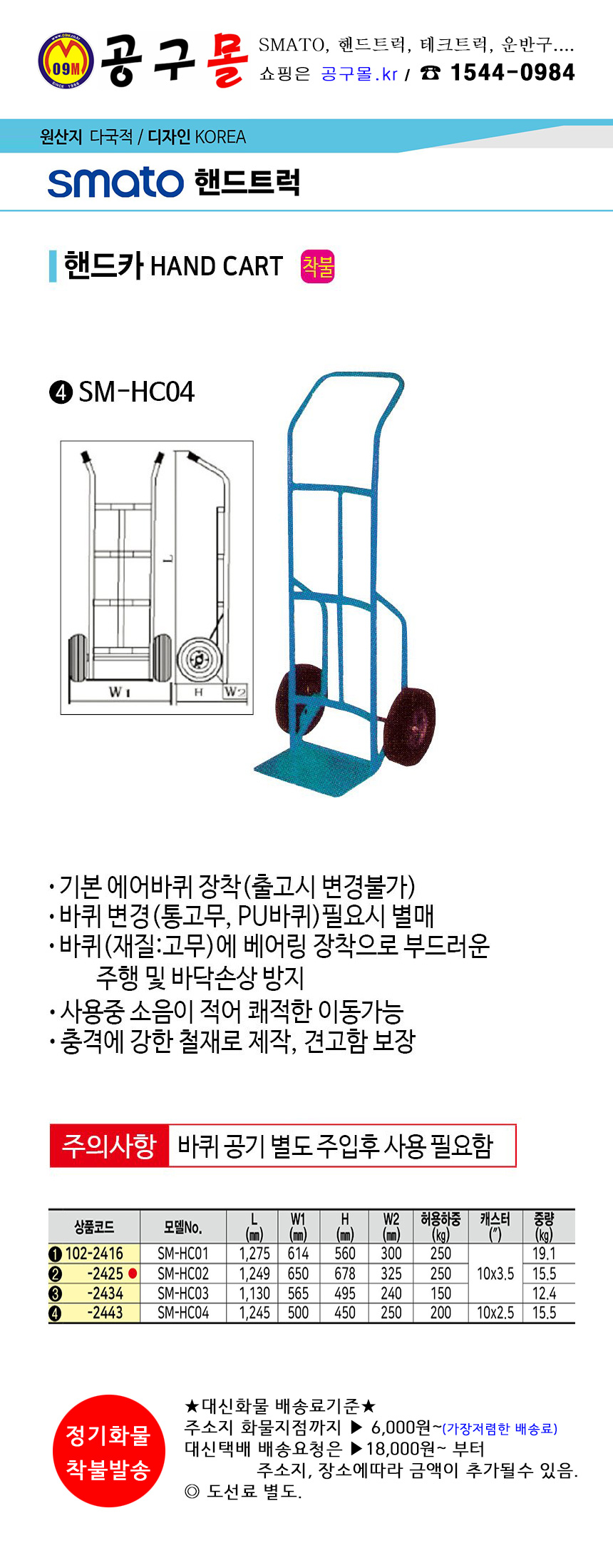 스마토 핸드카 SM-HC04 SMATO, 두발핸드카, 핸드캐리어, 공구몰, 102-2443