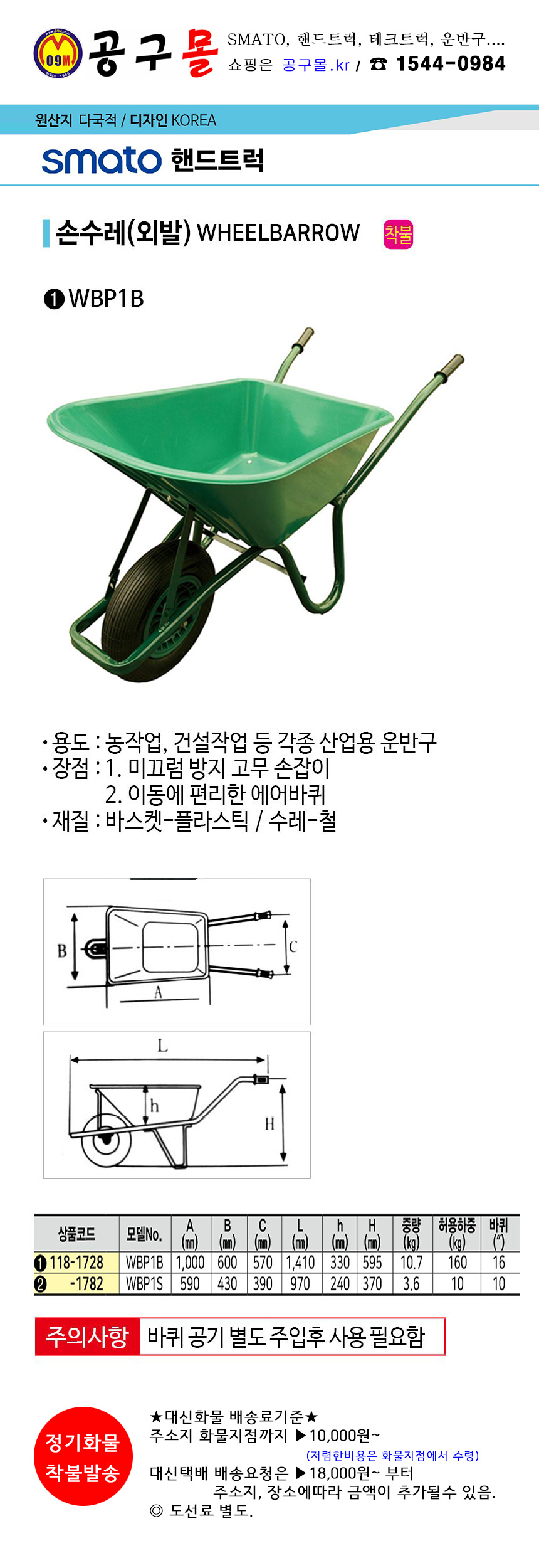 스마토 손수레(외발) WBP1B SMATO, 스마토, 외발리어카, 공구몰, 118-1728