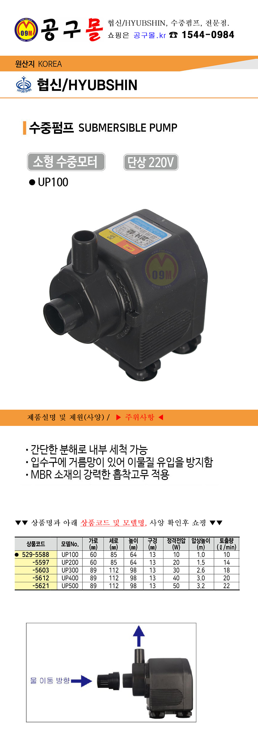 소형수중펌프(수동) UP100-10L, 협신, HYUBSHIN, 어항펌프, 바다물펌프, 미니펌프, 소형펌프,공구몰, 529-5588